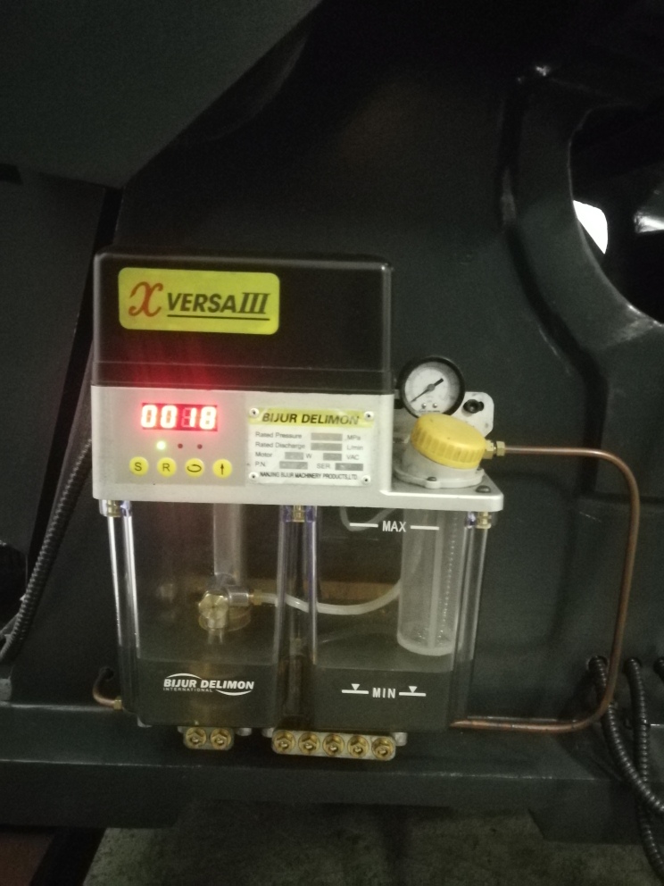 • centrálne mazanie z jedného miesta pomocou mazacieho agregátu s rozvodom maziva po celom stroji